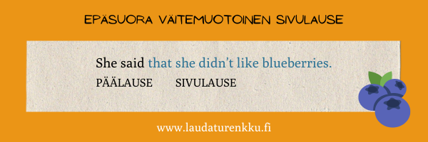 Toivottavasti tästä oli sinulle hyötyä ja ymmärrät epäsuoraa kerrontaa hieman paremmin! Tähän liittyen suosittelen sinua lukemaan artikkelin myös epäsuorista kysymyslauseista, koska niissä sattuu usein tietynlaisia virheitä. Hyppää artikkeliin tästä >>